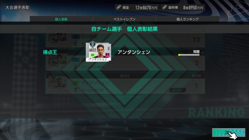 「アンタンシェン」選手の「得点王」というオマケ付きで・・・