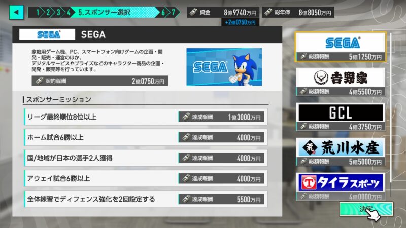 スポンサーミッションが甘めの「SEGA」さんをスポンサーに、J3の舞台に置いてきた忘れ物「J3優勝」を目標に心機一転で挑む事に!
