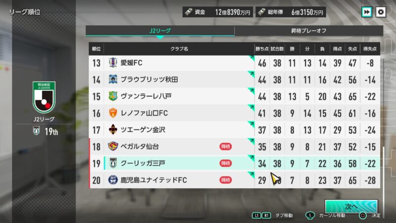 勝ち点34(勝9、分7、負22、得点36、失点58、得失点-22)という、本当に散々な成績で・・・