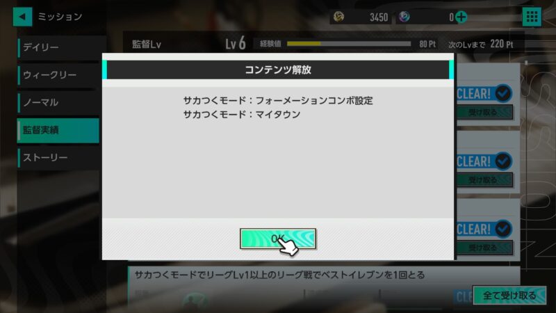 で、「監督Lv」がLv6になったことで新たなコンテンツ・・・