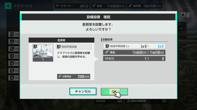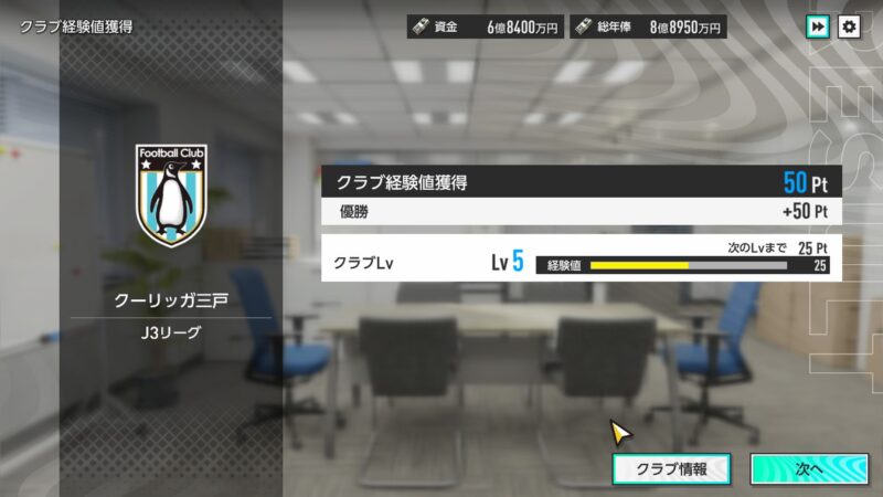 「クラブLv」のほうも、Lv5に上がり・・・(まだまだ、名門クラブへの道は長い・・・)