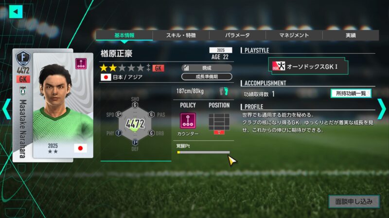 「GK」の「楢原 正豪」選手・・・(イケメンの選手でスタメンを固めたい人にはオススメ!)