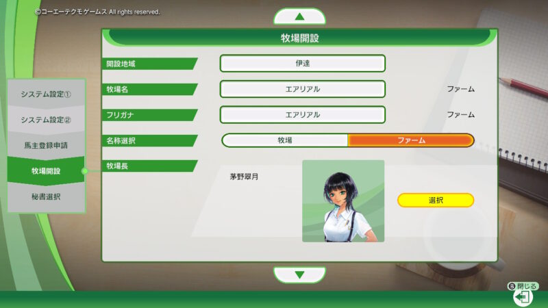 今回、新たに仲間入りした牧場長「茅野 翠月」さんに我が牧場を任せる事にしました!