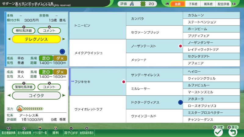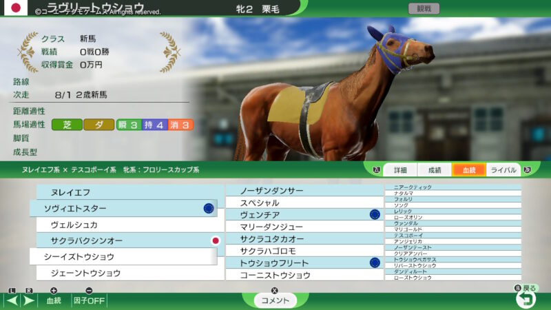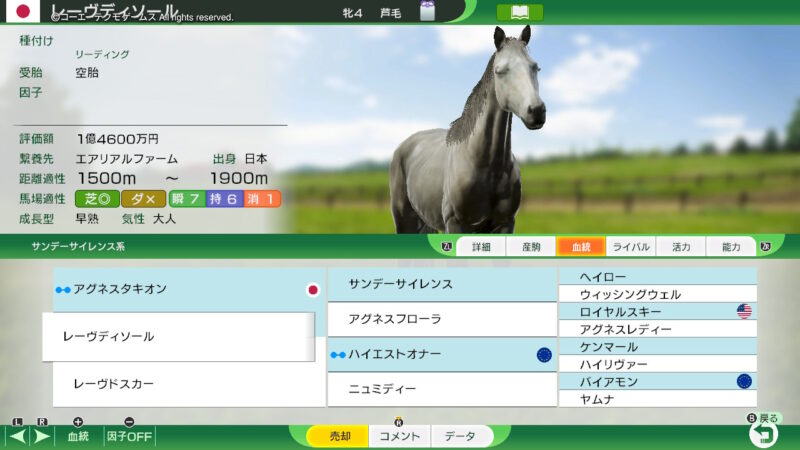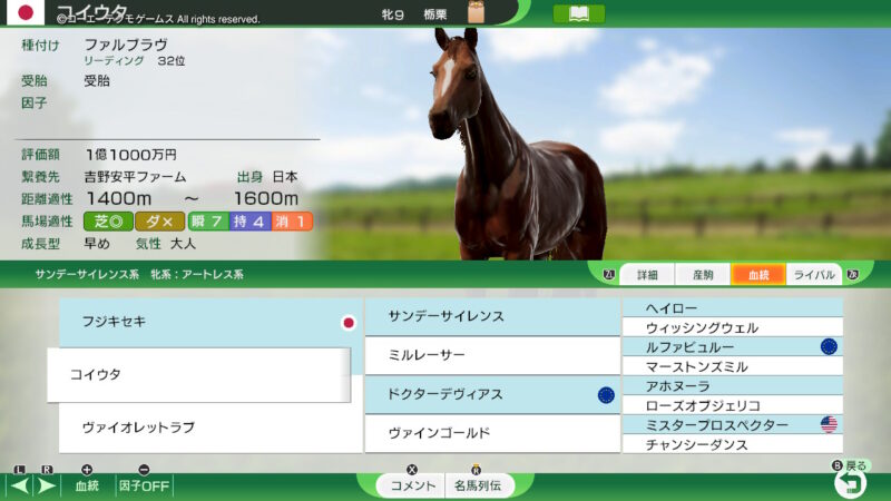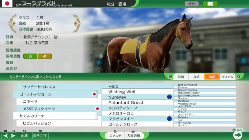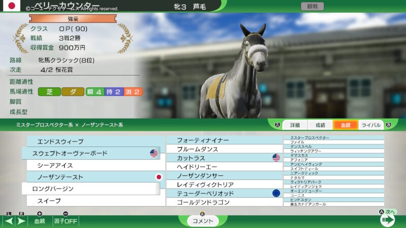 その子孫となる「ウインドバレー」、「ラストステージ」、「ウイニングポスト」、と、所有して、あわよくば「サードステージ」の系統を確率、発展させていこうかな?という、遊び方をしようかな?(途中で、気が変わるかも?ですが・・・)
