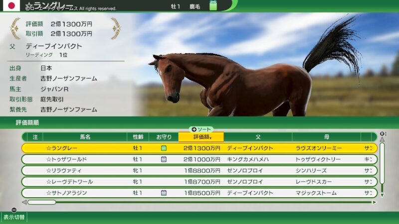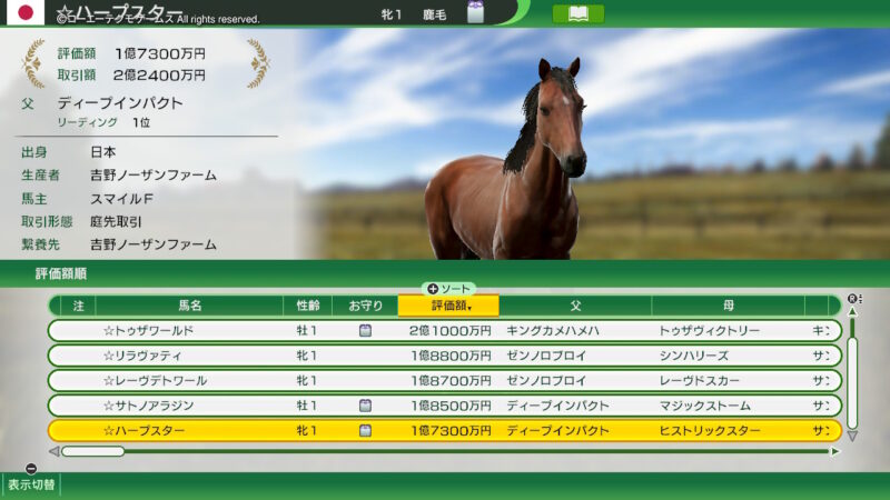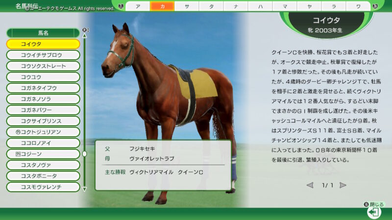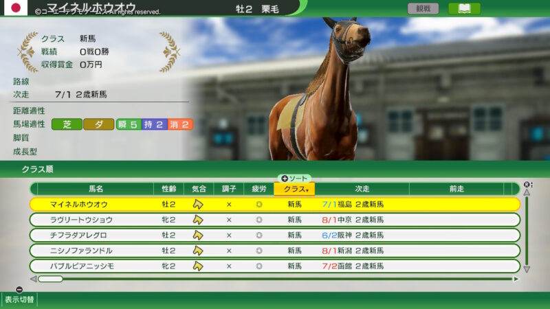 前回と同じラインナップの「古馬」を譲ってもらうイベントのラインナップ!(「2012年スタート」シナリオ!)