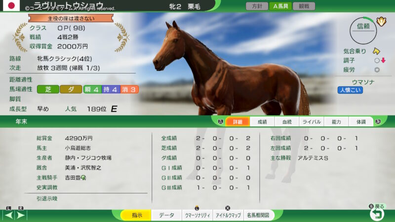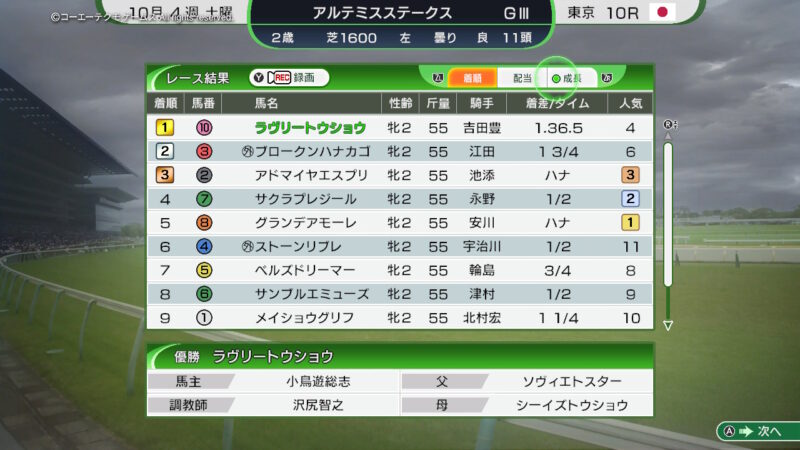せめて、ウイニングポストの世界で「椎野 はるか」さんの娘さんの「葵」さんで新人ジョッキーのデビューをお出迎え!と、思ったのですが・・・